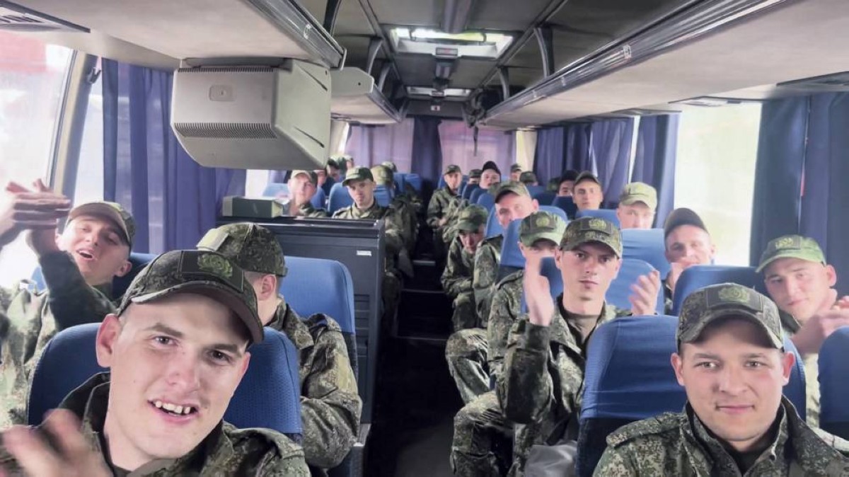 أسرى روس مُفرج عنهم يستقلون حافلة بعد عملية التبادل