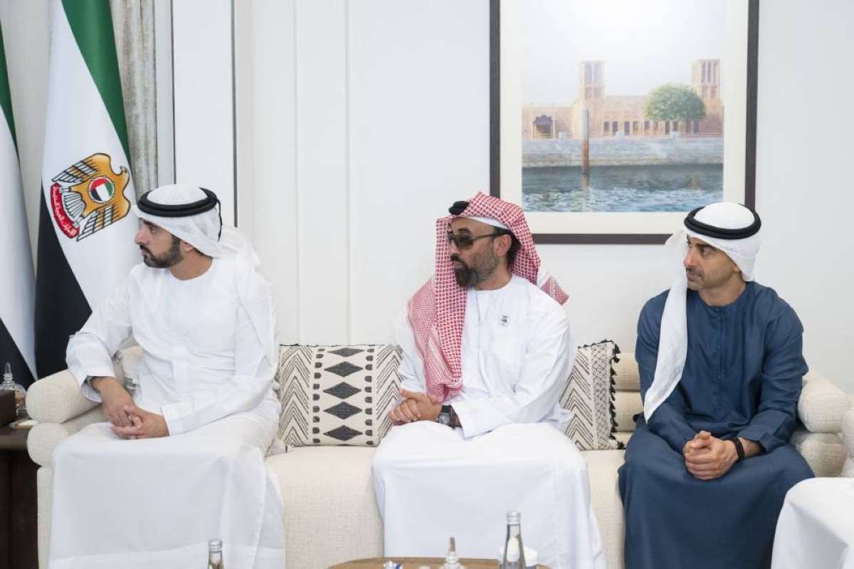 حضر اللقاء .. سمو الشيخ حمدان بن محمد بن راشد آل مكتوم ولي عهد دبي نائب رئيس مجلس الوزراء وزير الدفاع وسمو الشيخ طحنون بن زايد آل نهيان نائب حاكم إمارة أبوظبي مستشار الأمن الوطني وسمو الشيخ حمدان بن محمد بن زايد آل نهيان نائب رئيس ديوان الرئاسة للشؤون الخاصة ومعالي الشيخ محمد بن حمد بن طحنون آل نهيان مستشار رئيس الدولة ومعالي علي بن حماد الشامسي الأمين العام للمجلس الأعلى للأمن الوطني ومعالي الدكتور أحمد مبارك المزروعي رئيس مكتب رئيس الدولة للشؤون الإستراتيجية رئيس مكتب أبوظبي التنفيذي وعدد من المسؤولين.