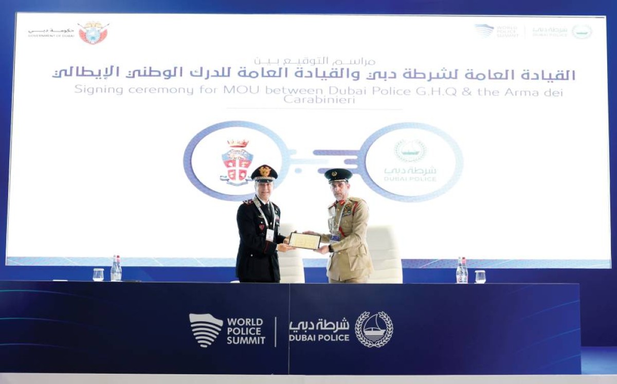 ووقّع مذكرة التفاهم من جانب شرطة دبي، معالي الفريق عبد الله خليفة المري، القائد العام لشرطة دبي، ومن طرف القيادة العامة للدرك الوطني الإيطالي، الفريق سالفاتوري لونغو، القائد العام لقوات الكارابينييري.