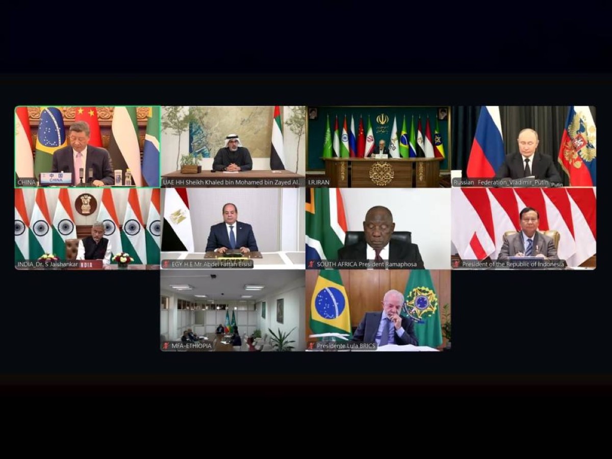 شارك في القمة الافتراضية لقادة دول مجموعة "بريكس"، فخامة شي جين بينغ، رئيس جمهورية الصين الشعبية، وفخامة فلاديمير بوتين، رئيس روسيا الاتحادية، وفخامة عبد الفتاح السيسي، رئيس جمهورية مصر العربية، وفخامة سيريل راما فوزا، رئيس جمهورية جنوب أفريقيا، وفخامة الدكتور مسعود بزشكيان، رئيس الجمهورية الإسلامية الإيرانية، وفخامة برابوو سوبيانتو، رئيس جمهورية إندونيسيا، ومعالي الدكتور سوبرامنيام جايشانكار، وزير الشؤون الخارجية في جمهورية الهند، ومعالي الدكتور جيديون تيموثيوس، وزير خارجية جمهورية إثيوبيا الفيدرالية الديمقراطية.