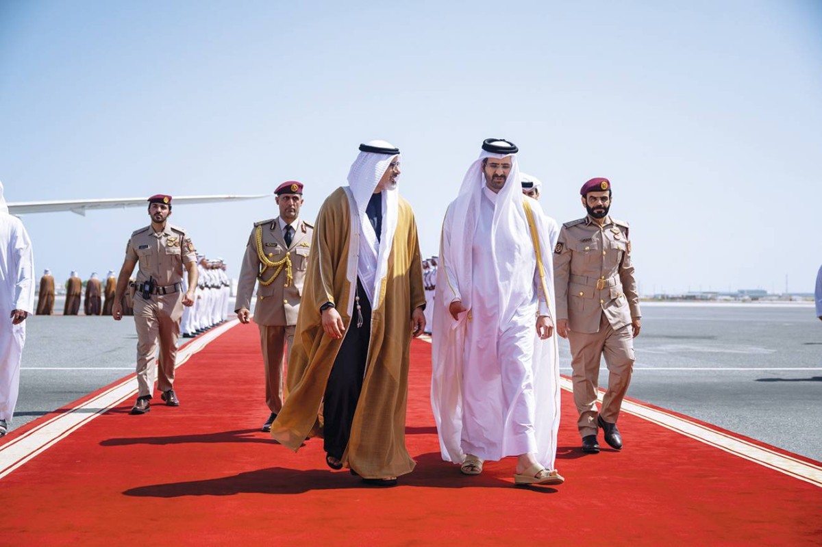 ورحّب صاحب السمو الشيخ تميم بن حمد آل ثاني، بسمو الشيخ خالد بن محمد بن زايد آل نهيان والوفد المرافق، وتبادلا الأحاديث الودية، التي تعكس عمق العلاقات الثنائية، ومتانة الروابط الأخوية التي تجمع البلدين وشعبيهما الشقيقين.