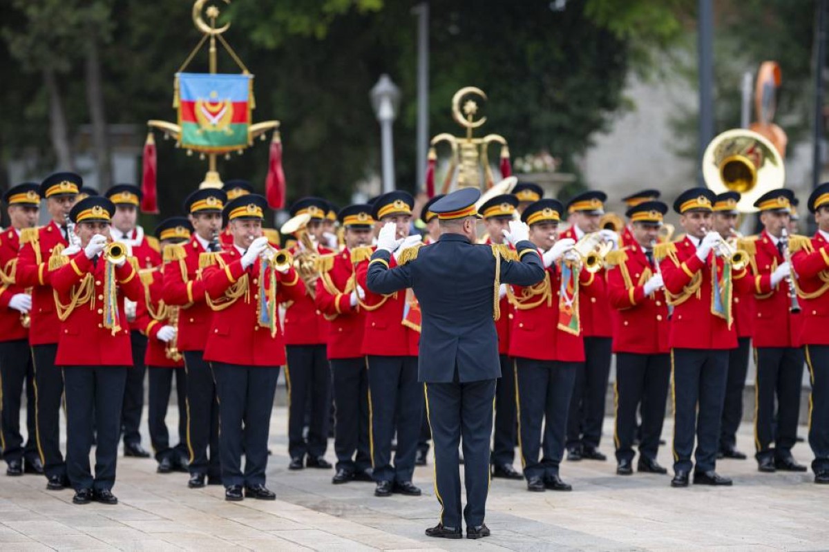 وجرت لسموه في الساحة الخارجية مراسم استقبال رسمية حيث عزف السلام الوطني لكل من دولة الإمارات وأذربيجان، واستعرض سموه ثلة من حرس الشرف اصطفت تحية لسموه.