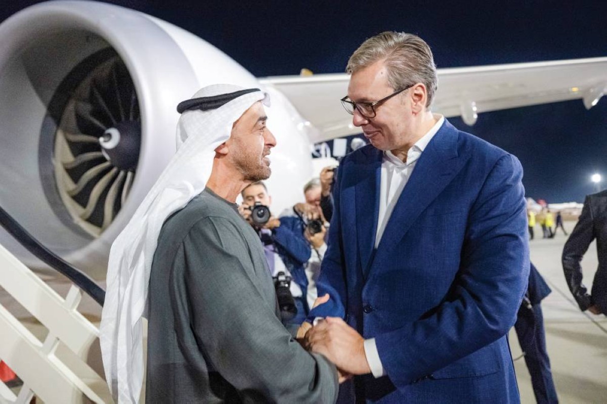 محمد بن زايد لدى وصوله إلى بلغراد وألكسندر فوتشيتش في استقباله