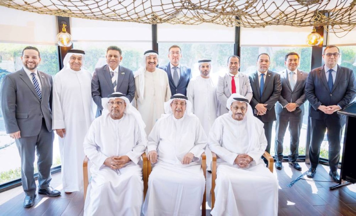 سعيد الشامسي وأعضاء المجلس في لقطة جماعية مع السفراء الجدد المعتمدين لدى الإمارات