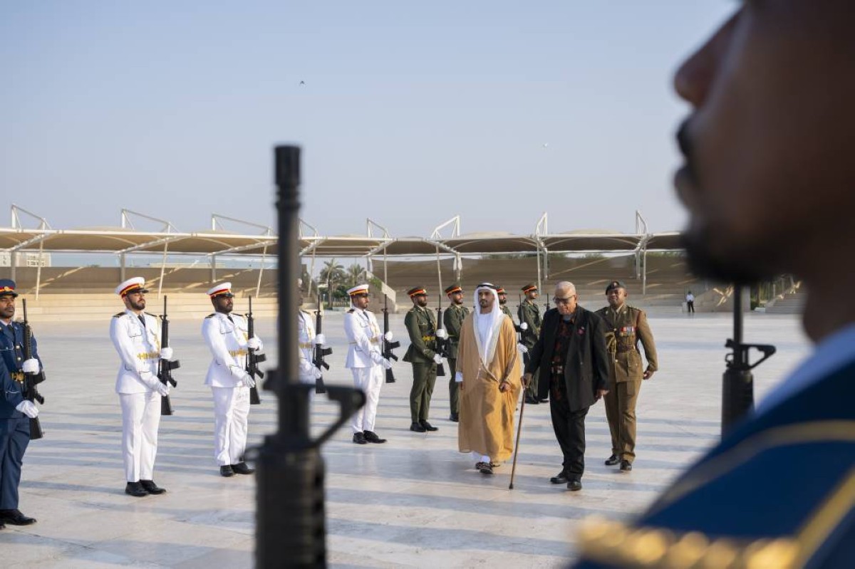 واستعرض رئيس جمهورية فيجي، يرافقه سمو الشيخ زايد بن محمد بن زايد آل نهيان، حرس الشرف الذي اصطفّ لتحيته، ثم وضع إكليلاً من الزهور أمام نصب الشهيد.