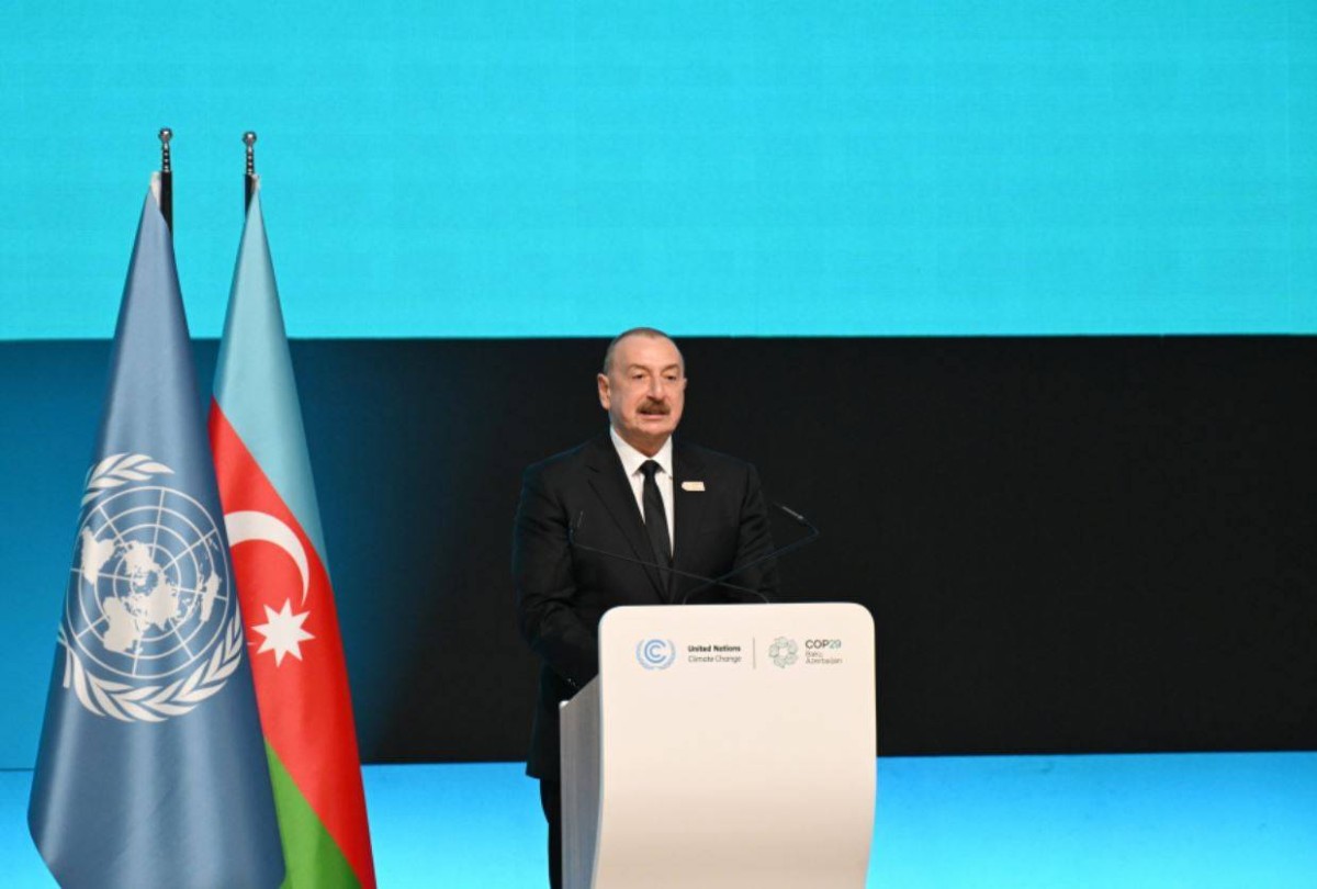 وقال علييف في كلمته إن تنظيم مؤتمر الأطراف COP29 في باكو، يعكس تقدير بلاده للعمل متعدد الأطراف وتلاقي الثقافات، مشيرا إلى أنه تم تسجيل أكثر من 72 ألف مشارك من أكثر من 196 دولة لحضور COP29.