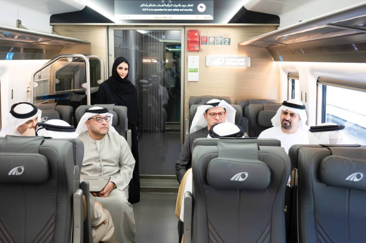 وقام سموه وأعضاء مجلس الإدارة بجولة داخل قطار الركاب اطلعوا خلالها على تصميمه الداخلي والمزايا التي سيوفرها للركاب، وواصل سموه وأعضاء مجلس الإدارة الجولة إلى محطة الركاب في مدينة محمد بن زايد، حيث اطلعوا على الأعمال الإنشائية المتقدمة في المحطة التي تتميز بواجهات معمارية فريدة.