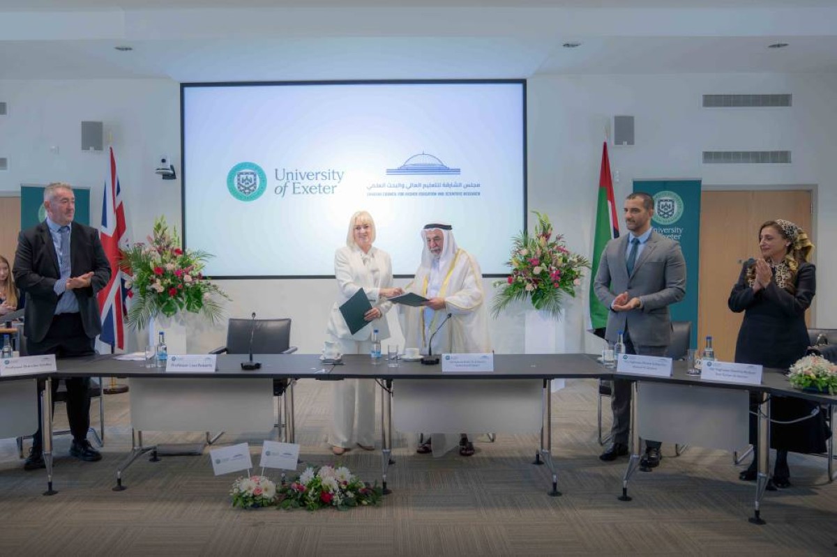 وفي مبنى النورث كوت بالجامعة وقع صاحب السمو حاكم الشارقة رئيس مجلس الشارقة للتعليم العالي والبحث العلمي، والدكتورة ليزا روبرتس رئيسة جامعة إكستر اتفاقية تعاون بين المجلس والجامعة لتنفيذ برنامج لتدريب القيادات في مؤسسات التعليم العالي بعنوان: "البوصلة القيادية: رسم مستقبل الحوكمة المسؤولة في الجامعات" وهو برنامج تدريبي متقدم وطموح للتحول في التعليم التنفيذي، صمم بشكل خاص لمجلس الشارقة للتعليم العالي والبحث العلمي.