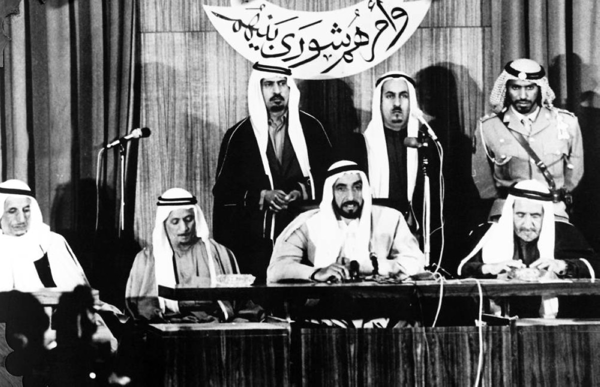 حيث اتفقا على توحيد الجهود وبناء دولة قوية تضم الإمارات السبع. وتم إعلان قيام دولة الإمارات العربية المتحدة في 2 ديسمبر 1971، ليصبح أول رئيس للدولة، يقودها إلى مرحلة جديدة من العزة والكرامة.
