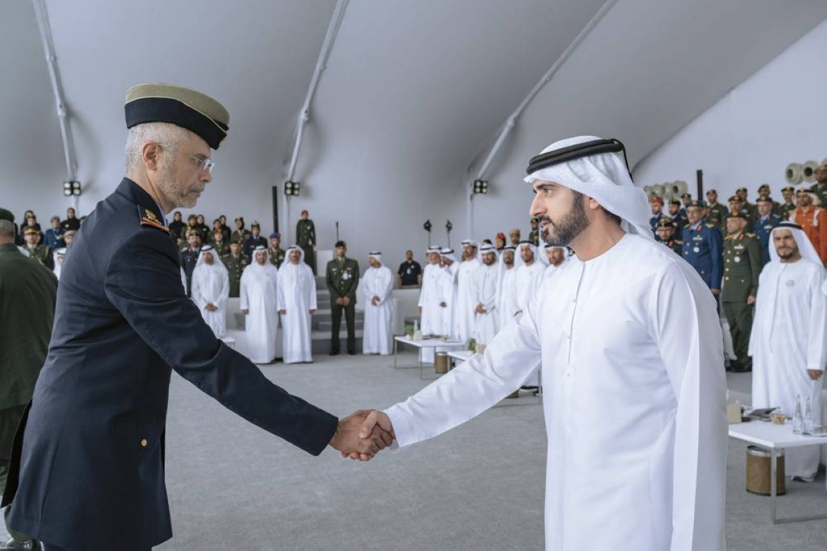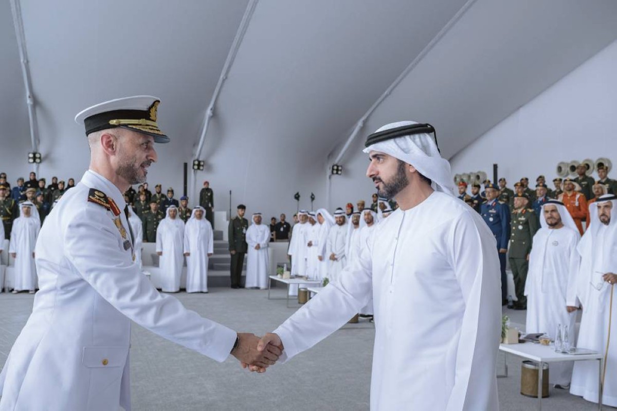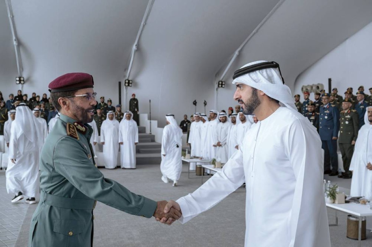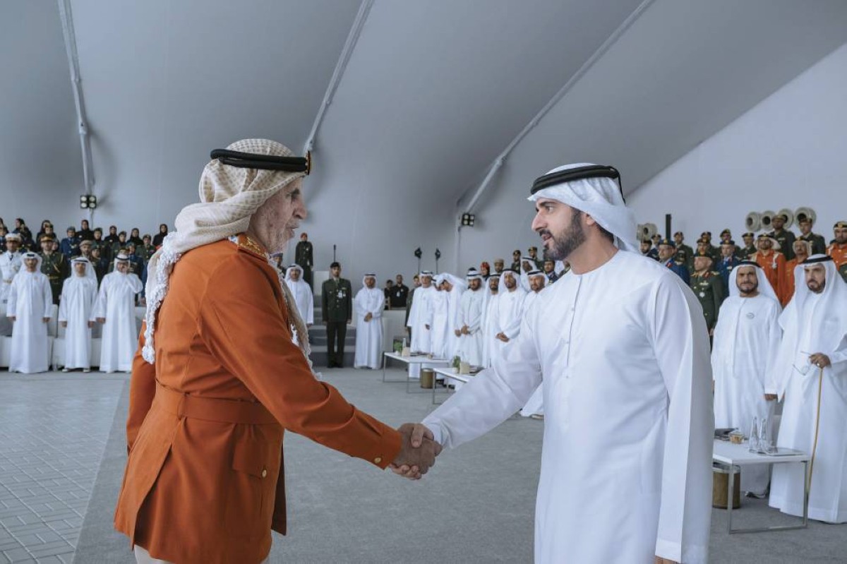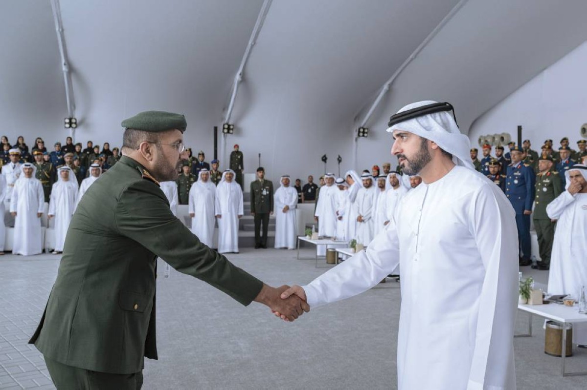 حمدان بن محمد خلال تكريم أبناء القوات المسلحة بحضور محمد المزروعي وعيسى المزروعي
