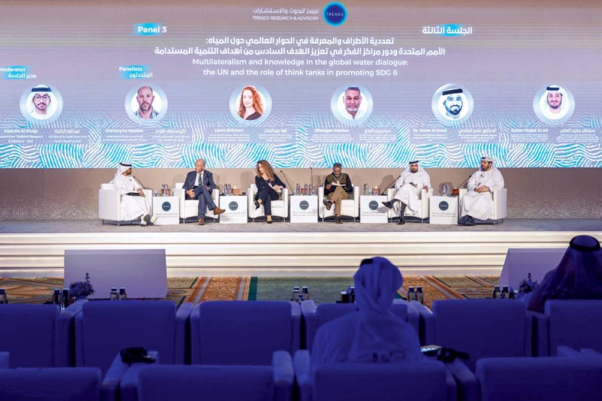 وجاءت الجلسة الأولى بعنوان «تشكيل مستقبل الأمن المائي»، وأدارها الباحث الرئيس عبدالعزيز الشحي، نائب رئيس قطاع البحوث في تريندز للبحوث والاستشارات.