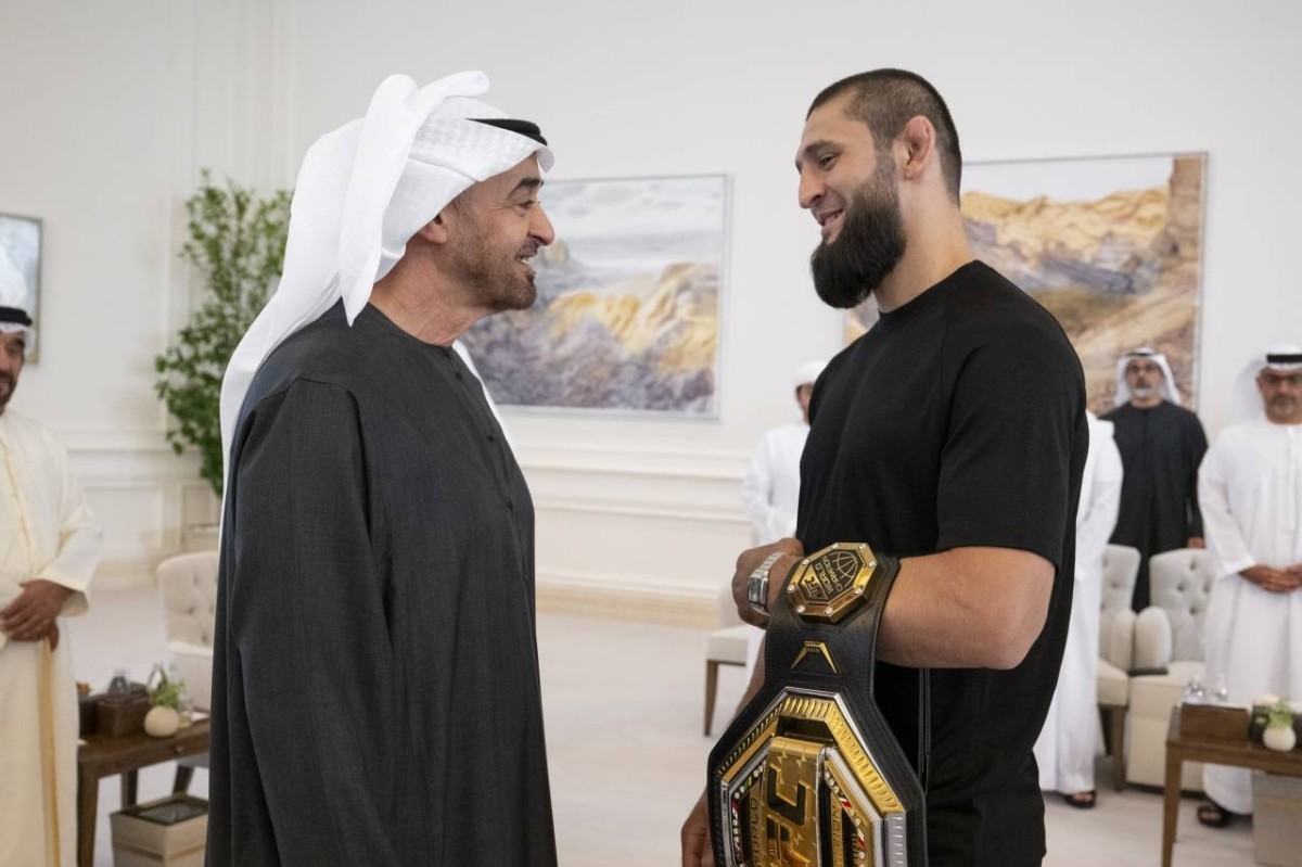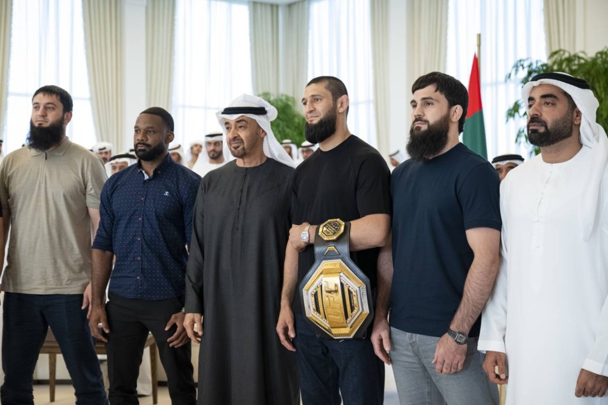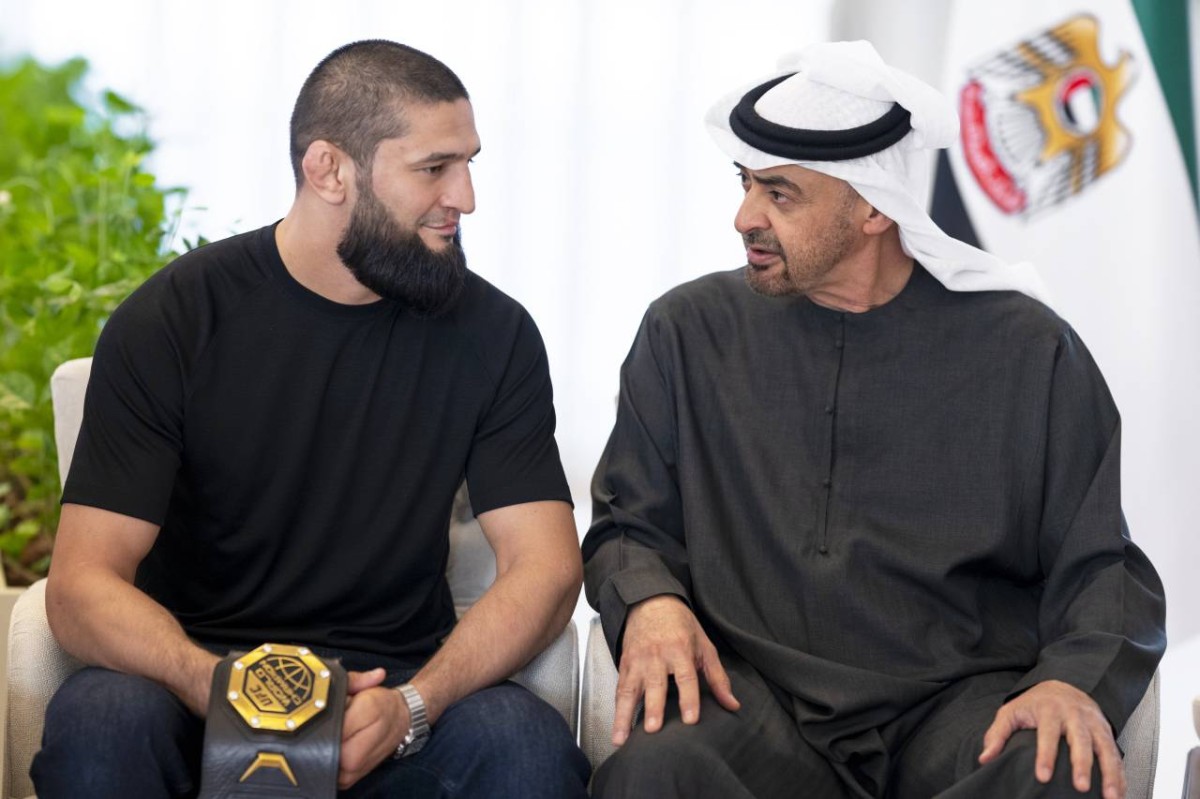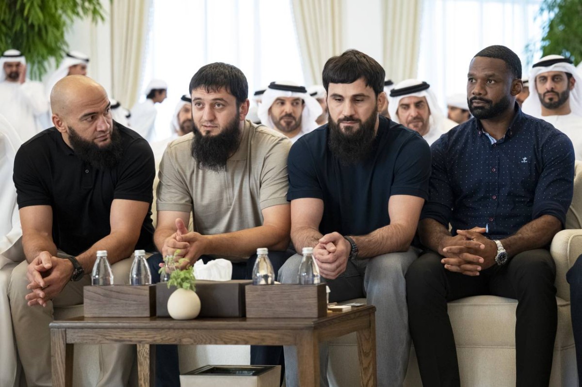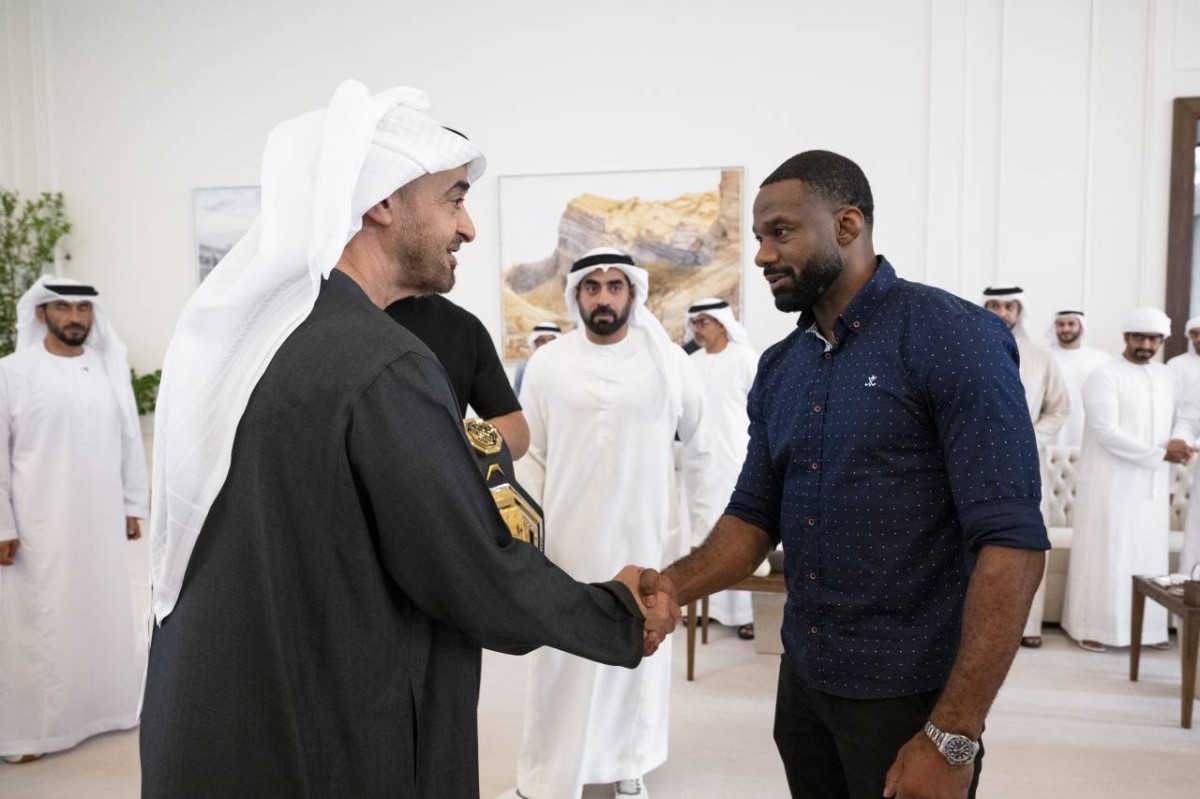 استقبل صاحب السمو الشيخ محمد بن زايد آل نهيان، رئيس الدولة، حفظه الله، حمزة شيماييف، الفائز ببطولة العالم للوزن المتوسط «يو إف سي»، التي أُقيمت مؤخراً في مدينة شيكاغو الأمريكية.