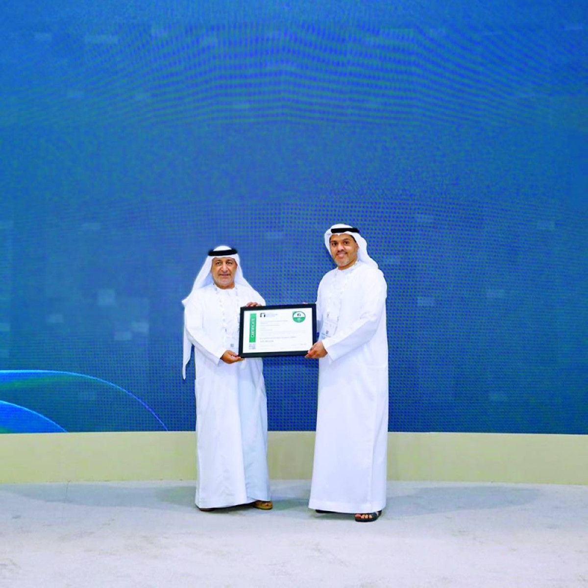 وتسلم الشهادتين في دبي بالنيابة عن الدكتور محمد سليم العلماء، وكيل وزارة الصحة ووقاية المجتمع، الدكتور سالم الدرمكي، مستشار معالي الوزير، من مهند شاهين، المدير الإقليمي لمنطقة الشرق الأوسط وأفريقيا لدى معهد الابتكار العالمي، بحضور صقر الحميري، الرئيس التنفيذي للابتكار ومدير إدارة الاستراتيجية والمستقبل، ووداد بوحميد، مدير إدارة الاتصال الحكومي في الوزارة.