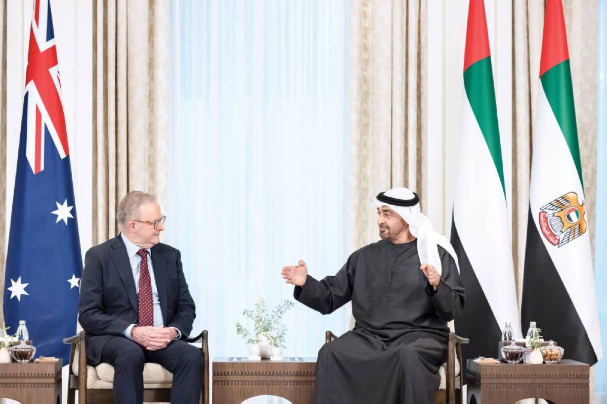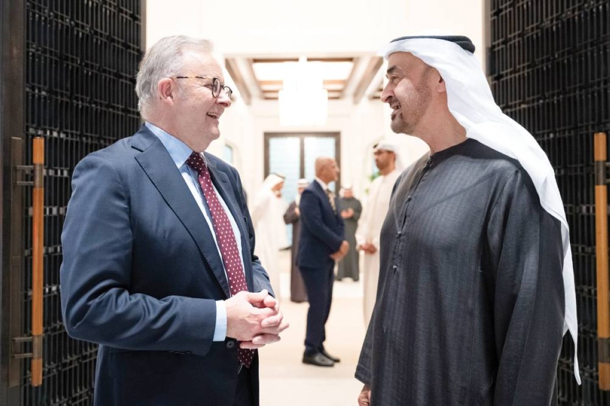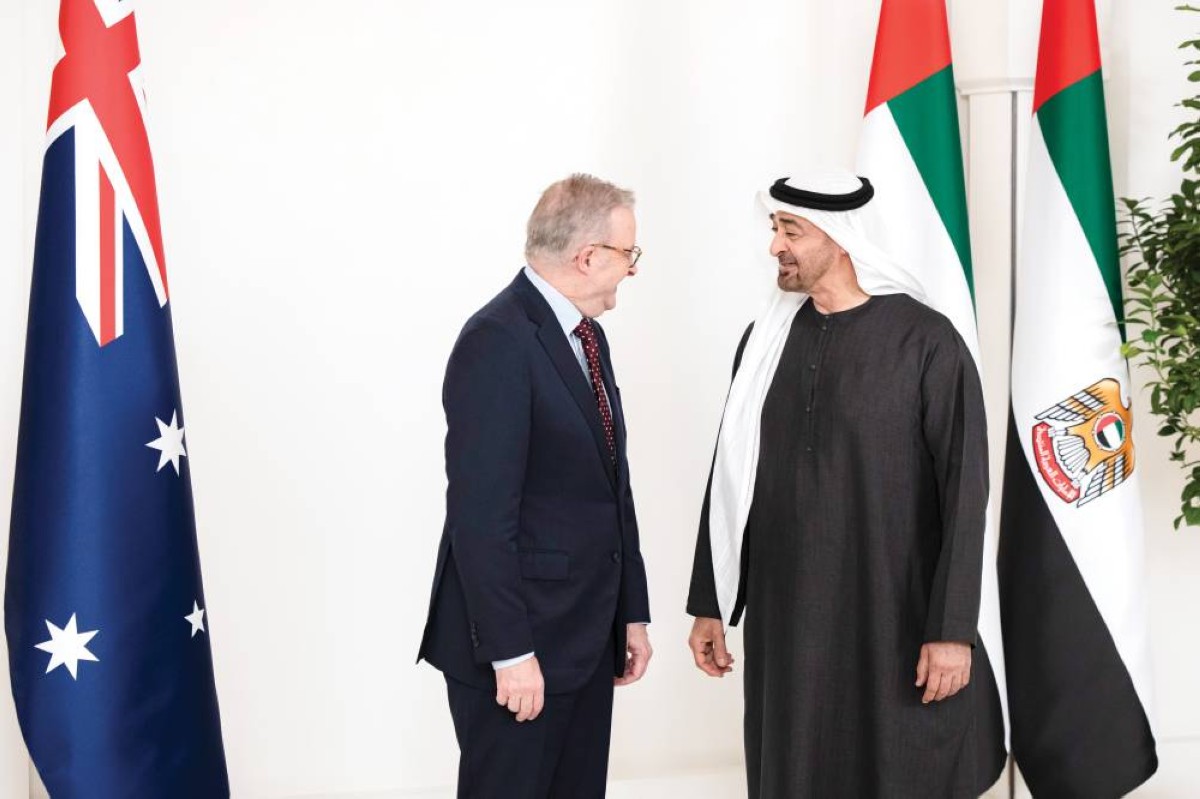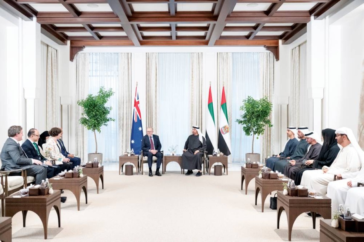 بحث صاحب السمو الشيخ محمد بن زايد آل نهيان رئيس الدولة "حفظه الله" ومعالي أنتوني البانيز رئيس وزراء كومنولث أستراليا، مختلف جوانب العلاقات الثنائية خاصة الاقتصادية والتنموية وسبل تعزيزها في إطار اتفاقية الشراكة الاقتصادية الشاملة بين البلدين.