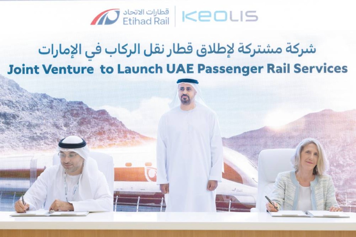 وشهد سموه الإعلان عن الشركة المشتركة بين قطارات الاتحاد، وشركة «كيوليس» الرائدة عالمياً في مجال خدمات نقل الركاب، لتقديم خدمات نقل الركاب بالسكك الحديدية في الدولة والتي سيتم تشغيلها في العام 2026.