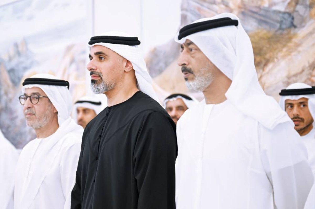 وسمو الشيخ ذياب بن محمد بن زايد آل نهيان نائب رئيس ديوان الرئاسة للشؤون التنموية وأسر الشهداء وسمو الشيخ حمدان بن محمد بن زايد آل نهيان نائب رئيس ديوان الرئاسة للشؤون الخاصة ومعالي الشيخ محمد بن حمد بن طحنون آل نهيان مستشار رئيس الدولة وعدد من الشيوخ والوزراء وكبار المسؤولين والمواطنين والضيوف.