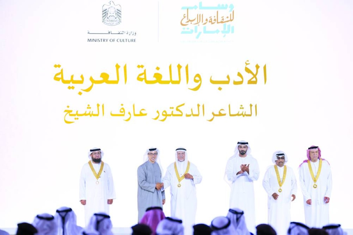 والسيد إسماعيل عبدالله الحمادي عن فئة الفنون الأدائية والمسرح، حيث يُعد من أبرز روّاد الحركة المسرحية والفنون الأدائية في دولة الإمارات والعالم العربي، وصاحب البصمة العميقة في المشهد الثقافي من خلال أدواره المتعددة كمؤلف ومخرج ومدير ثقافي، والدكتور عارف الشيخ عن فئة الأدب واللغة العربية، وهو مبدع كلمات السلام الوطني لدولة الإمارات، وأحد أبرز الشخصيات الثقافية والأدبية في الدولة، جمع بين الشعر والفكر والتربية، وساهم في تطوير المناهج التعليمية الوطنية بما يخدم بناء جيل معتز بتراثه وقيمه.
