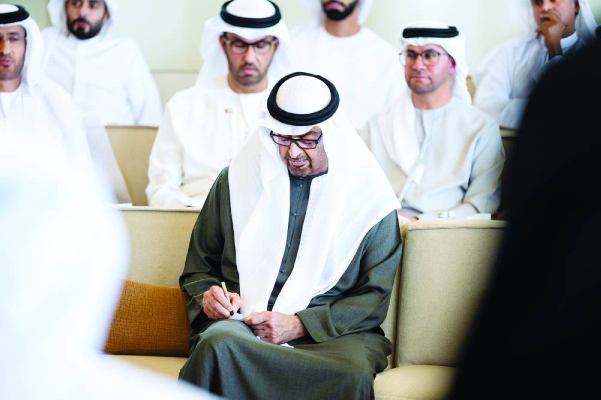 حضر الجلسة كل من..سمو الشيخ خالد بن محمد بن زايد آل نهيان ولي عهد أبوظبي وسمو الشيخ سلطان بن محمد بن سلطان القاسمي ولي عهد ونائب حاكم الشارقة وسمو الشيخ عمار بن حميد النعيمي ولي عهد عجمان والفريق سمو الشيخ سيف بن زايد آل نهيان نائب رئيس مجلس الوزراء وزير الداخلية ومعالي الشيخ محمد بن حمد بن طحنون آل نهيان مستشار صاحب السمو رئيس الدولة.