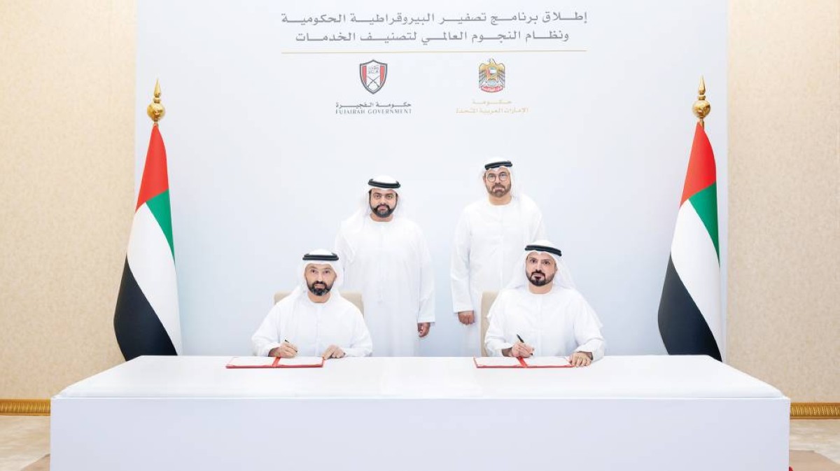 وقال سموه أمس: «أطلقنا اليوم شراكة بين حكومة دولة الإمارات وحكومة الفجيرة لتطبيق برنامج تصفير البيروقراطية الحكومية، ونظام النجوم العالمي لتصنيف الخدمات، ووجهنا الجهات كافة بالتركيز على تحسين جودة الخدمات، وتقديم تجربة مبسّطة تُسهّل حياة الإنسان».