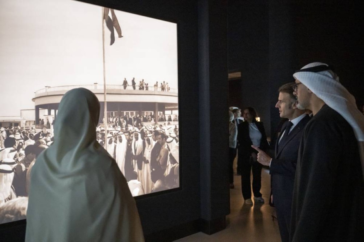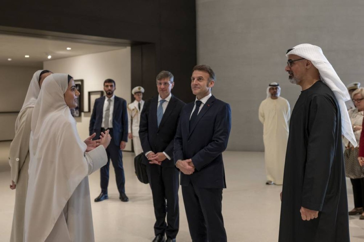 زار فخامة إيمانويل ماكرون، رئيس الجمهورية الفرنسية، متحف زايد الوطني في المنطقة الثقافية بجزيرة السعديات، يرافقه سمو الشيخ خالد بن محمد بن زايد آل نهيان، ولي عهد أبوظبي رئيس المجلس التنفيذي لإمارة أبوظبي.