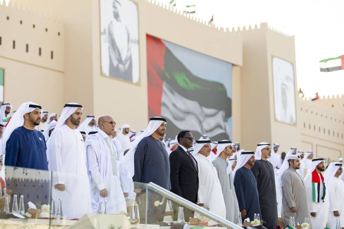 وقد شهد المسيرة في منطقة الوثبة في أبوظبي كل من .. محمد ولد الشيخ الغزواني رئيس الجمهورية الإسلامية الموريتانية الشقيقة والوفد المرافق والدكتور لازاروس شاكويرا رئيس جمهورية مالاوي والأمير سلمان بن حمد آل خليفة ولي العهد رئيس مجلس الوزراء في مملكة البحرين الشقيقة والوفد المرافق وعدد من ضيوف الدولة.