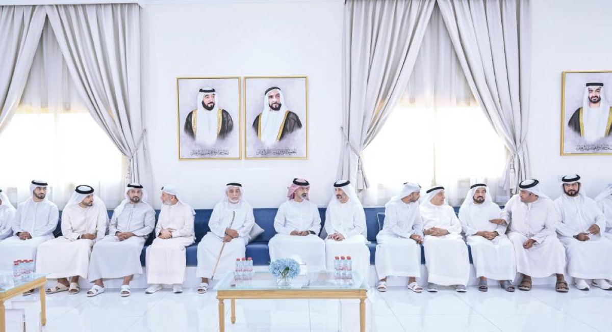 ولي عهد عجمان خلال تقديمه واجب العزاء بحضور أحمد وعبدالعزيز وراشد النعيمي