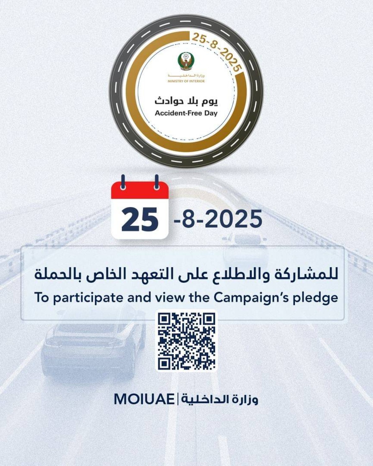أطلقت وزارة الداخلية ممثلة بمجلس المرور الاتحادي، وبالتنسيق مع القيادات الشرطية كافة في الدولة، مبادرتها المرورية الريادية «يوم بلا حوادث» لتتزامن مع انطلاق حملتها الفصلية «عام دراسي آمن».