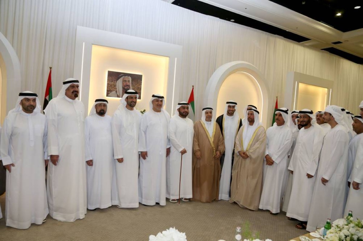 حضر سمو الشيخ عبدالله بن سالم بن سلطان القاسمي نائب حاكم الشارقة، وسمو الشيخ سلطان بن أحمد بن سلطان القاسمي نائب حاكم الشارقة، وسمو الشيخ عمار بن حميد النعيمي، ولي عهد عجمان رئيس المجلس التنفيذي، حفل الاستقبال الذي أقامه الوليد خالد أحمد بن خادم النعيمي، بمناسبة زفاف نجله خالد إلى كريمة عبدالله سلطان أحمد بن خادم النعيمي، وذلك في مركز الجواهر للمناسبات والمؤتمرات.