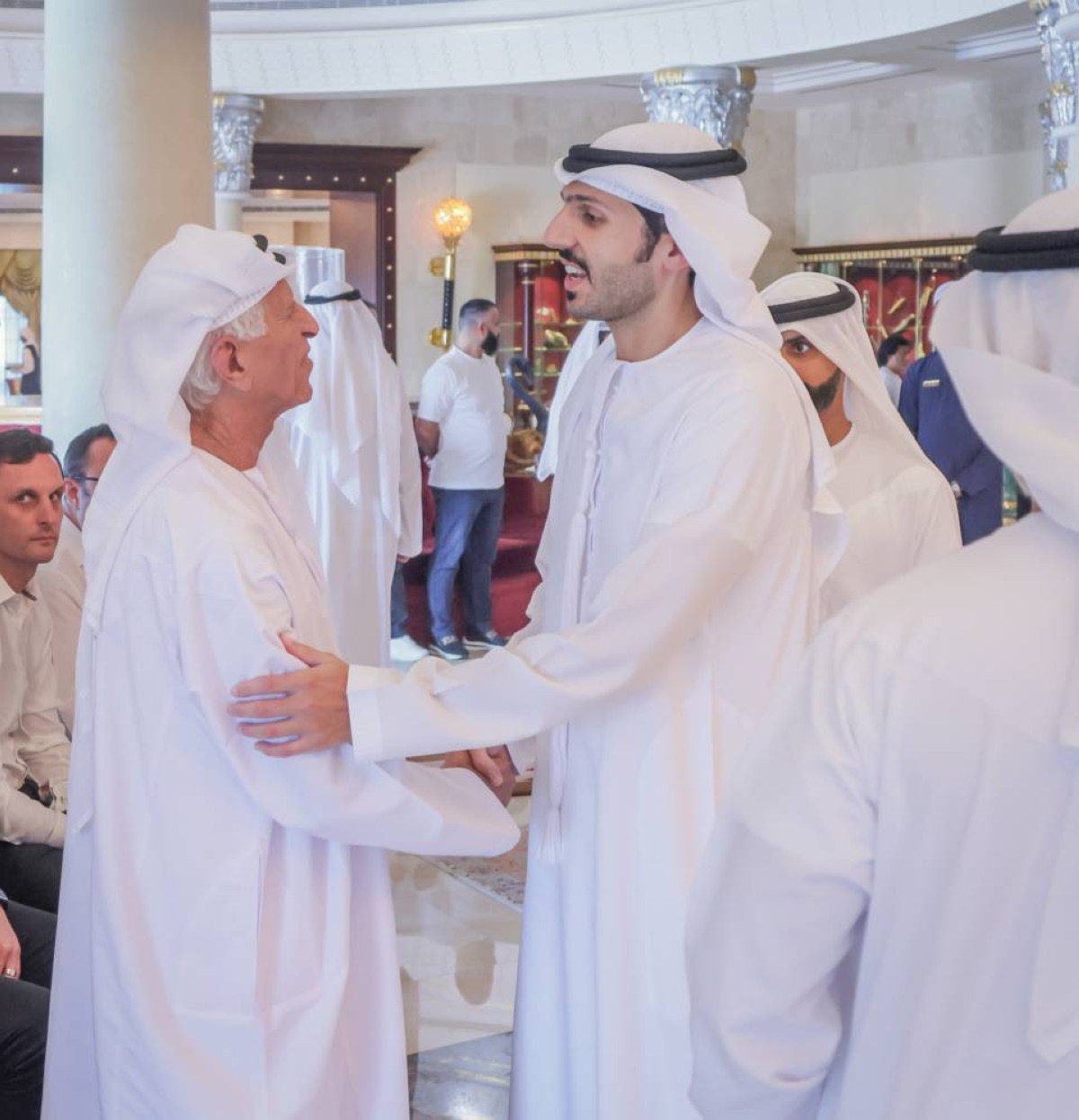 كما قدم واجب العزاء معالي الشيخ نهيان بن مبارك آل نهيان، وزير التسامح والتعايش، والشيخ سلطان بن حمدان بن زايد آل نهيان وذلك خلال زيارة سموه لمجلس العزاء في دبي.
