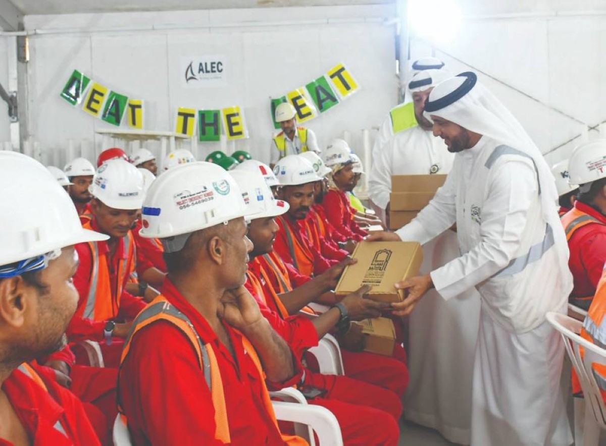 كما شاركت الجمعية في حملة حظر العمل وقت الظهيرة، التي أطلقتها وزارة الموارد البشرية والتوطين، والتي امتدت من 15 يونيو حتى 15 سبتمبر، وذلك من خلال توزيع 1050 وجبة مبردة على العمال في مختلف إمارات الدولة، بالإضافة إلى توزيع هدايا ومستلزمات شخصية لدعم 158 عاملاً، بما يسهم في تحقيق أهداف الحملة المتمثلة بحماية العمال من التعرض المباشر لأشعة الشمس والحرارة المرتفعة خلال ساعات الذروة، عبر الالتزام بفترات الراحة وتوفير المياه وظروف العمل الملائمة، ومتابعة تطبيق الحملة في مواقع العمل، لضمان سلامة العاملين.