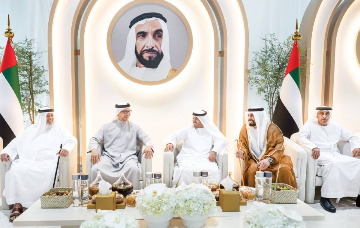 حضر سمو الشيخ منصور بن زايد آل نهيان، نائب رئيس الدولة، نائب رئيس مجلس الوزراء، رئيس ديوان الرئاسة، حفل الاستقبال الذي أقامه مسلم سالم بن لغية العامري، بمناسبة زفاف نجله عبدالله إلى كريمة سليمان صالح بن لغية العامري، وذلك في مركز أبوظبي للمعارض «أدنيك».