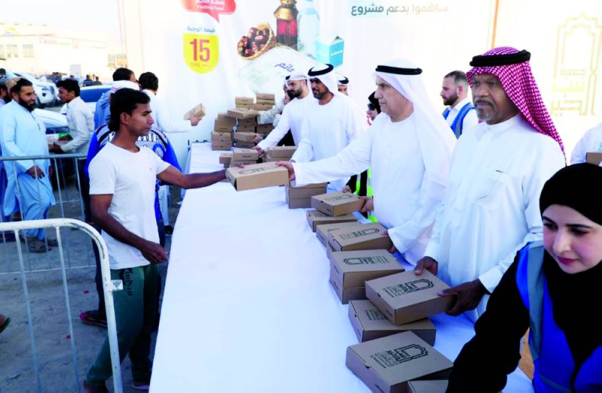 كثفت جمعية بيت الخير في يوم زايد للعمل الإنساني نشاطاتها الخيرية والإنسانية، ووزعت بهذه المناسبة أمس، 60 ألف وجبة إفطار، ونظمت حفلاً لتكريم الرعاة والشركاء المساهمين في دعم مشروع «إفطار صائم»، الذي وفر على مدى السنوات العشر الأخيرة ملايين الوجبات المتكاملة لملايين العمال المقيمين من مختلف الجنسيات.