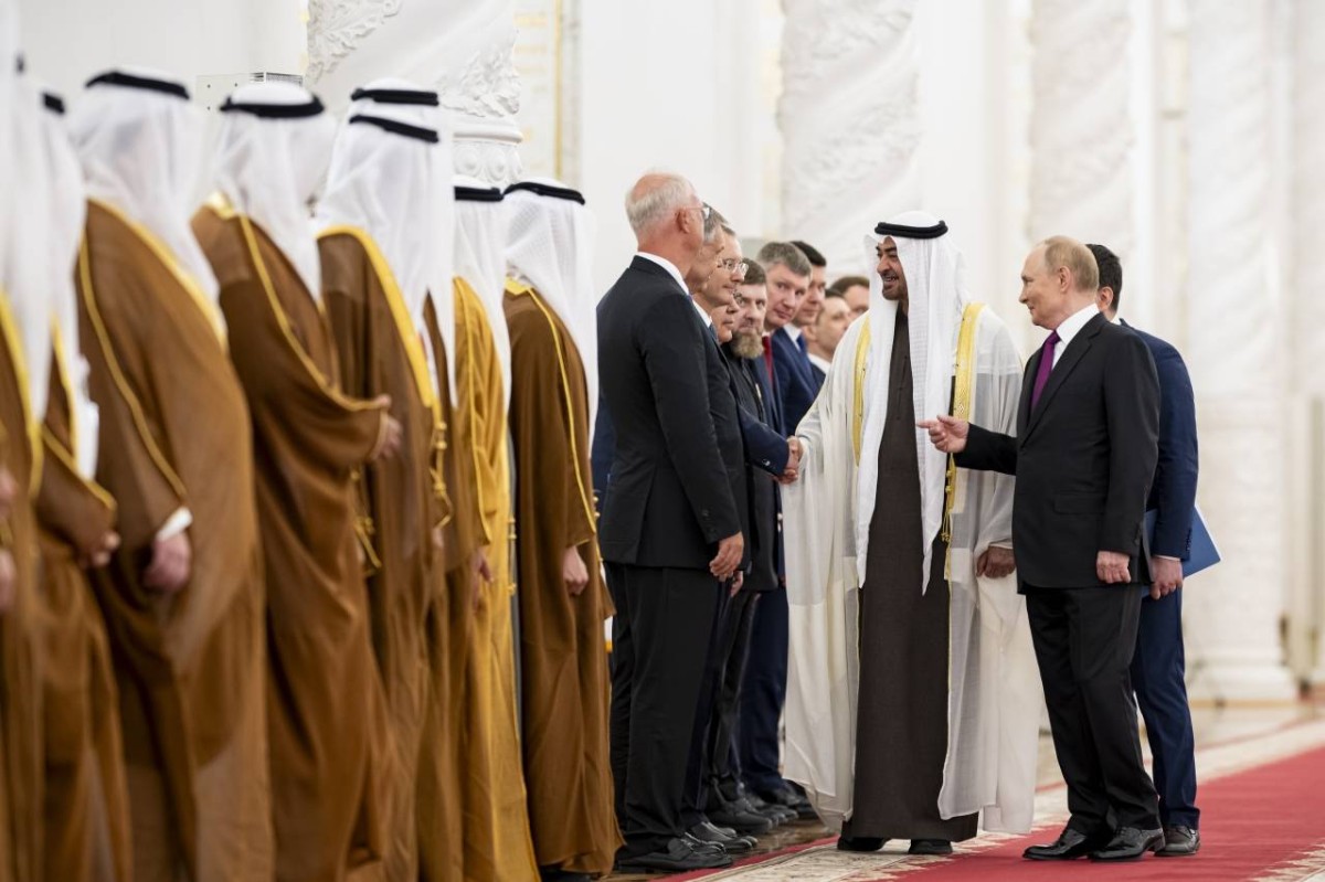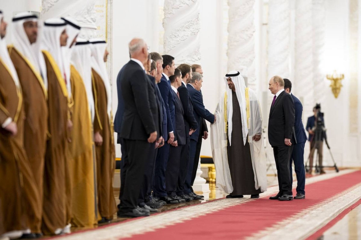 وكان صاحب السمو رئيس الدولة قد وصل إلى الكرملين في وقت سابق، حيث كان في استقباله الرئيس الروسي، وتم عزف السلام الوطني للبلدين، وصافح سموه كبار مستقبليه، فيما صافح الرئيس الروسي الوفد المرافق لسموه.