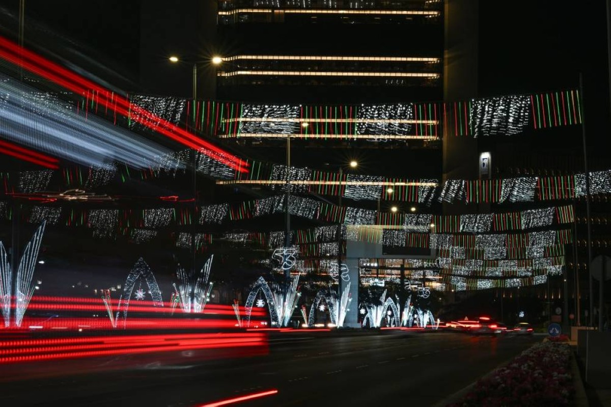 وشكلت الإنارات بأشكالها وأنواعها المختلفة، لوحة بانورامية ممتدة أضافت إلى مدن الدولة طابعا احتفاليا مميزا يجمع بين الأصالة والحداثة، كما ازدانت الساحات العامة بعروض ضوئية تفاعلية ، تمنح الجمهور تجربة بصرية نابضة بروح الاتحاد.