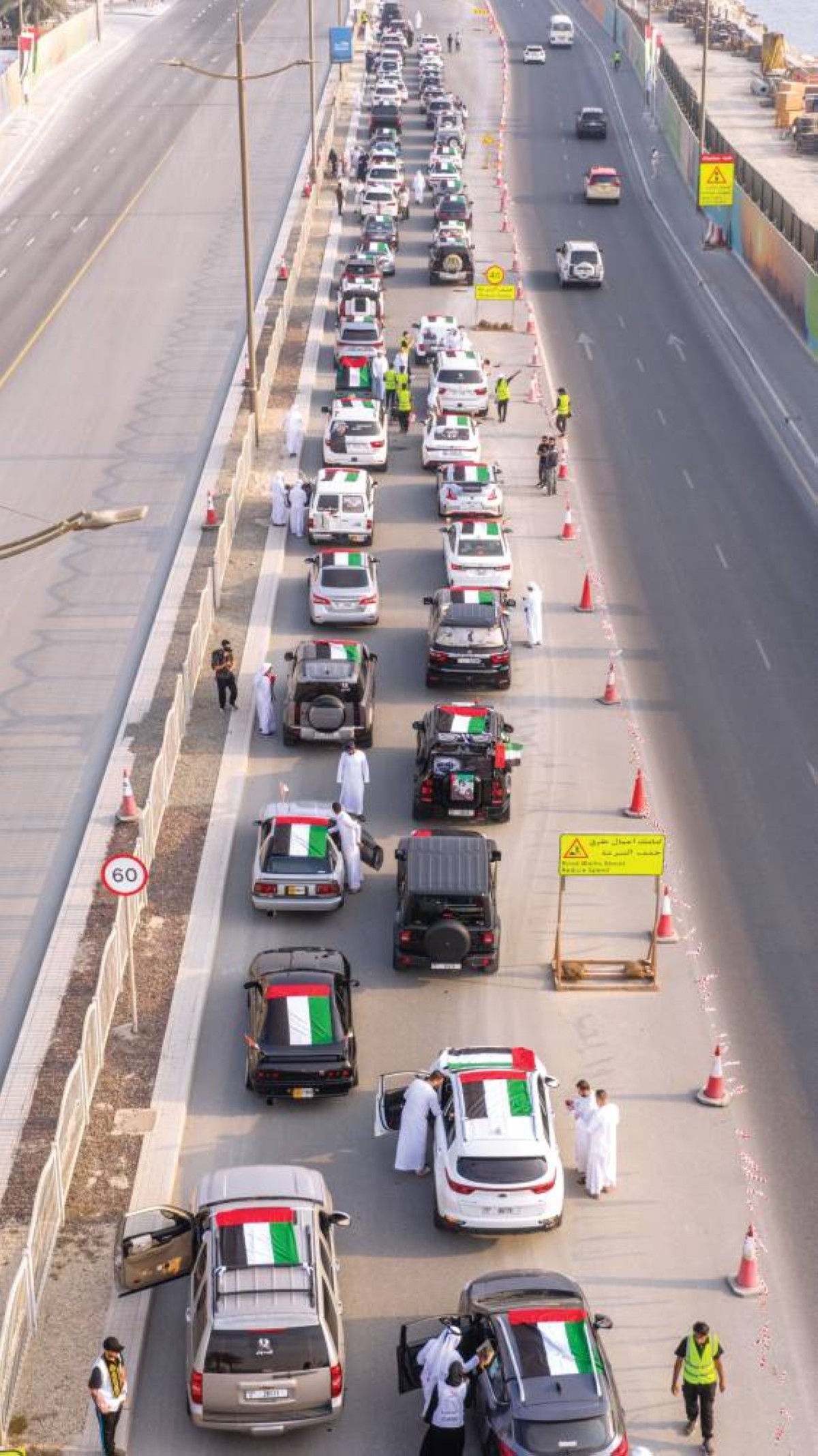 ونتوجه للشكر لكل قائدي السيارات الذين شاركوا في مسيرة الاتحاد، من مواطنين ومقيمين، لما أبدوه من التزام بالإرشادات الخاصة بالمسيرة.