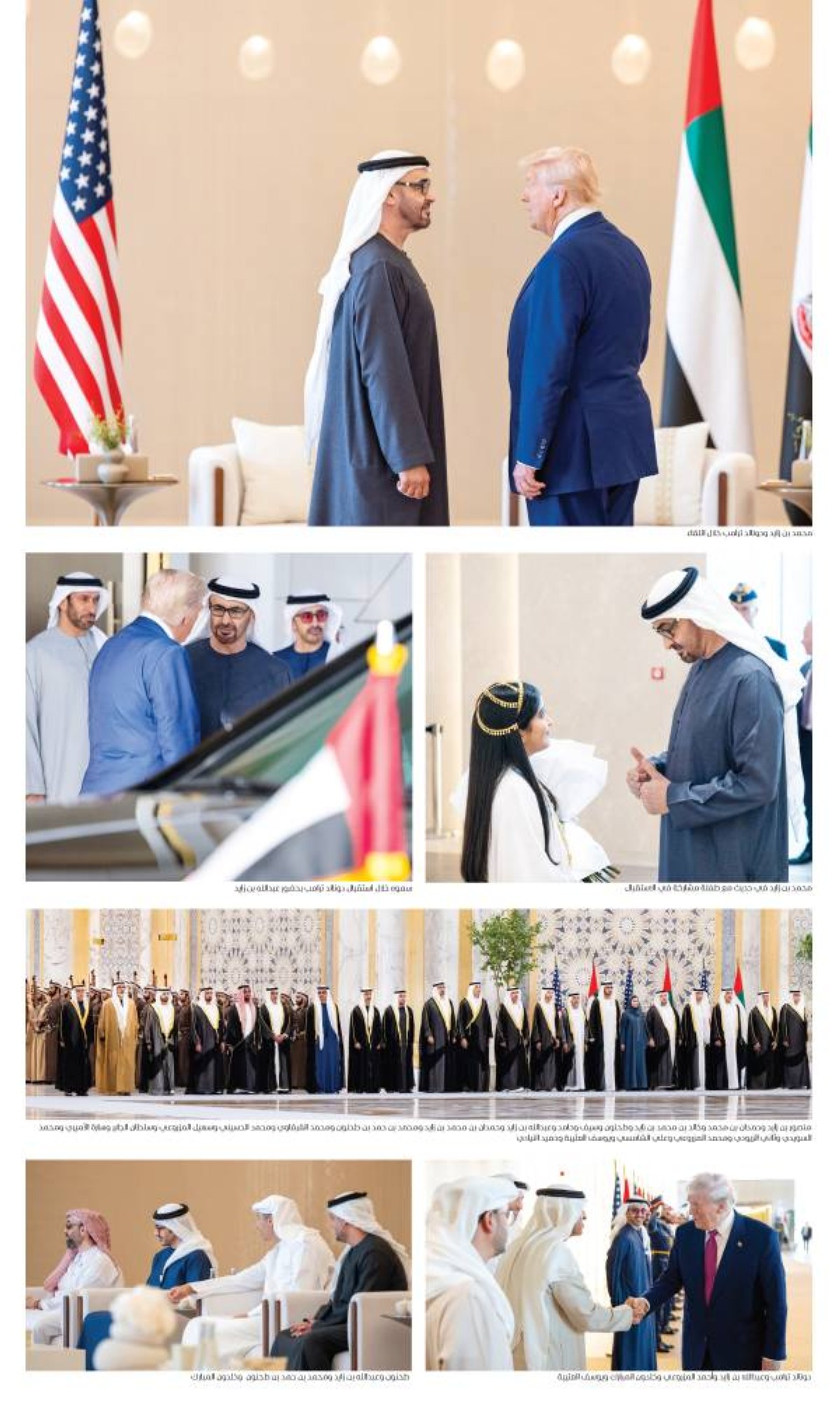 وكان صاحب السمو الشيخ محمد بن زايد آل نهيان، رئيس الدولة، حفظه الله، قد استقبل أمس دونالد ترامب رئيس الولايات المتحدة الأمريكية الذي يقوم بـ«زيارة دولة» إلى دولة الإمارات.