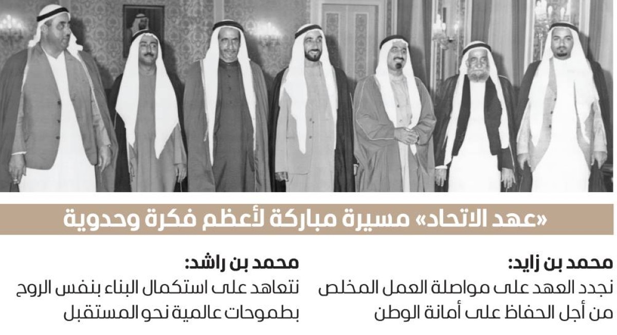 والذي راود لأعوام الوالد المؤسس المغفور له الشيخ زايد بن سلطان آل نهيان، طيب الله ثراه، وإخوانه حكام الإمارات، وتُوّج بالاجتماع التاريخي عام 1971، والذي شهد توقيع وثيقة الاتحاد ودستور الدولة.