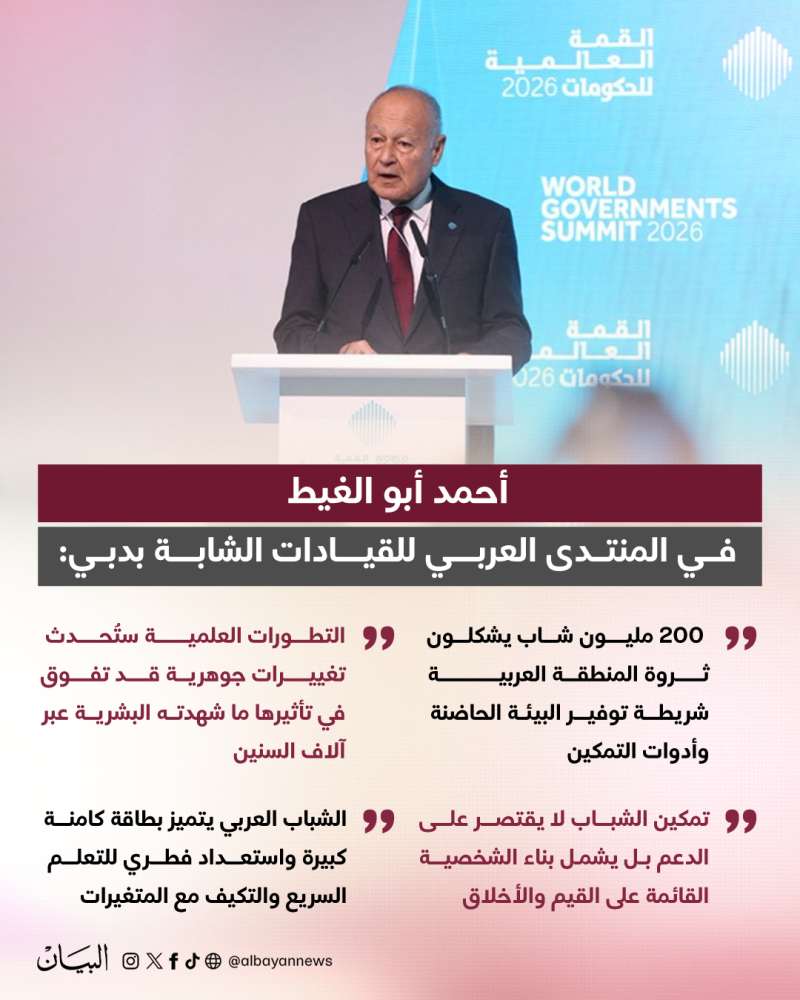 وأكد الأمين العام لجامعة الدول العربية أن السؤال لم يعد يتمثل في الحاجة إلى الشباب، فالإجابة باتت محسومة، إذ إن المستقبل كان وسيظل للشباب، لكن التحدي الحقيقي يكمن في كيفية إعداد قيادات شابة قادرة على إدارة التحولات، وتحويل التحديات إلى فرص، وبناء مستقبل يليق بطموحات الأوطان والشعوب العربية.