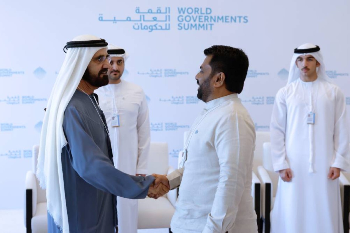 ورحّب صاحب السموّ الشيخ محمد بن راشد آل مكتوم بمشاركة فخامة أنورا كومارا ديساناياكي في أعمال القمة العالمية للحكومات، مثمّناً سموّه سعي جمهورية سريلانكا الديمقراطية الاشتراكية إلى توثيق تعاونها مع حكومات العالم، وحرصها على تعزيز الشراكات الدولية، وتبادل الخبرات في مجالات العمل التنموي والإداري مع قادة العمل الحكومي والقطاعات الحيوية الرئيسية في مختلف أنحاء العالم.