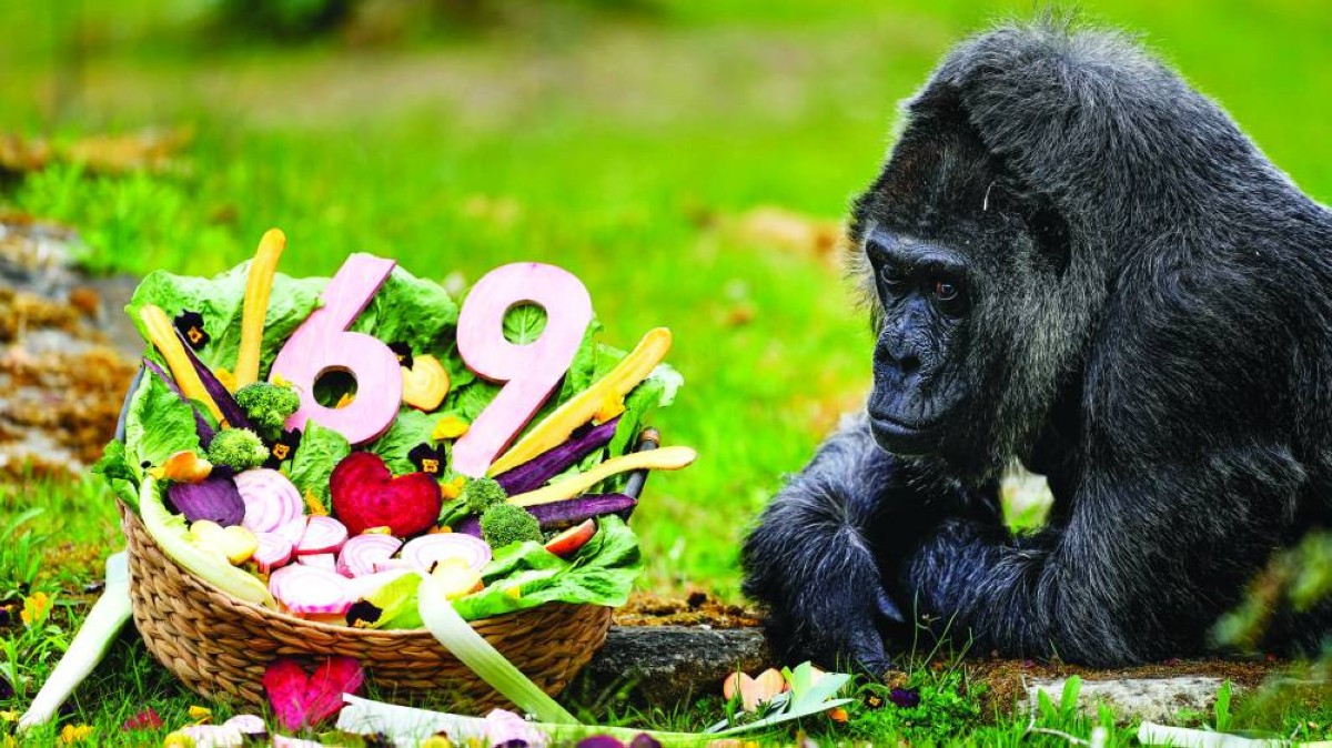 وهي تُعدّ، حسب «روسيا اليوم»، أقدم غوريلا تعيش في الأسر في العالم، وقد احتفلت بعيد ميلادها في حديقة حيوان برلين، بوليمة صحية، شملت الطماطم الكرزية والبنجر والكراث والخس، بدلاً من الكعكة التقليدية.