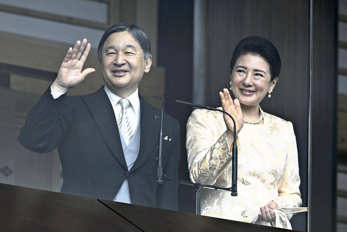 ولوح ناروهيتو، والإمبراطورة ماساكو، وابنتهما الأميرة آيكو، وعائلة شقيقه الأصغر ولي العهد الأمير أكيشينو، من شرفة القصر لشكر المهنئين الذين كانوا يهتفون ويلوحون بأعلام شمس الصباح الصغيرة.
