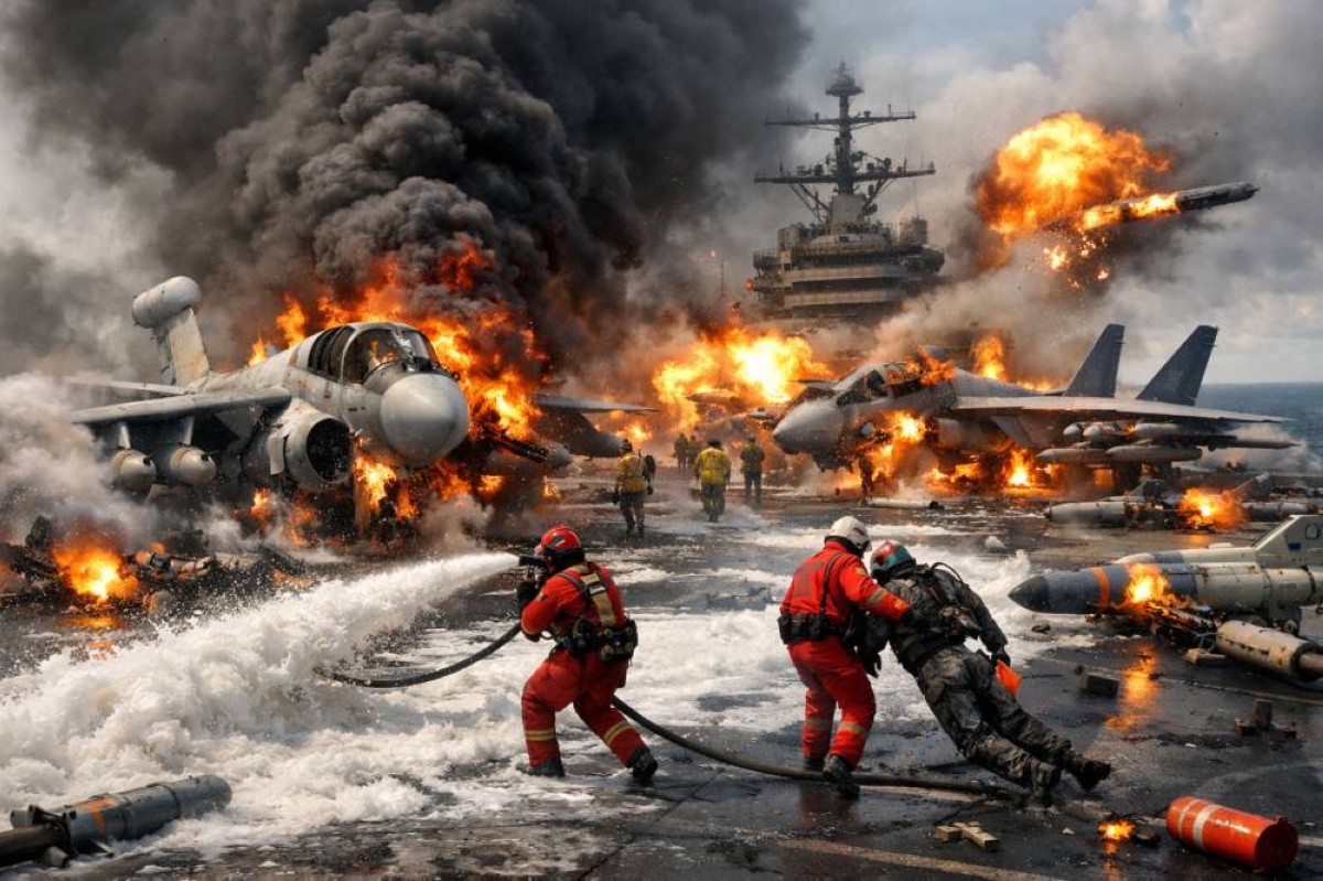 ماذا يحدث عندما يندلع حريق على سطح حاملة طائرات؟