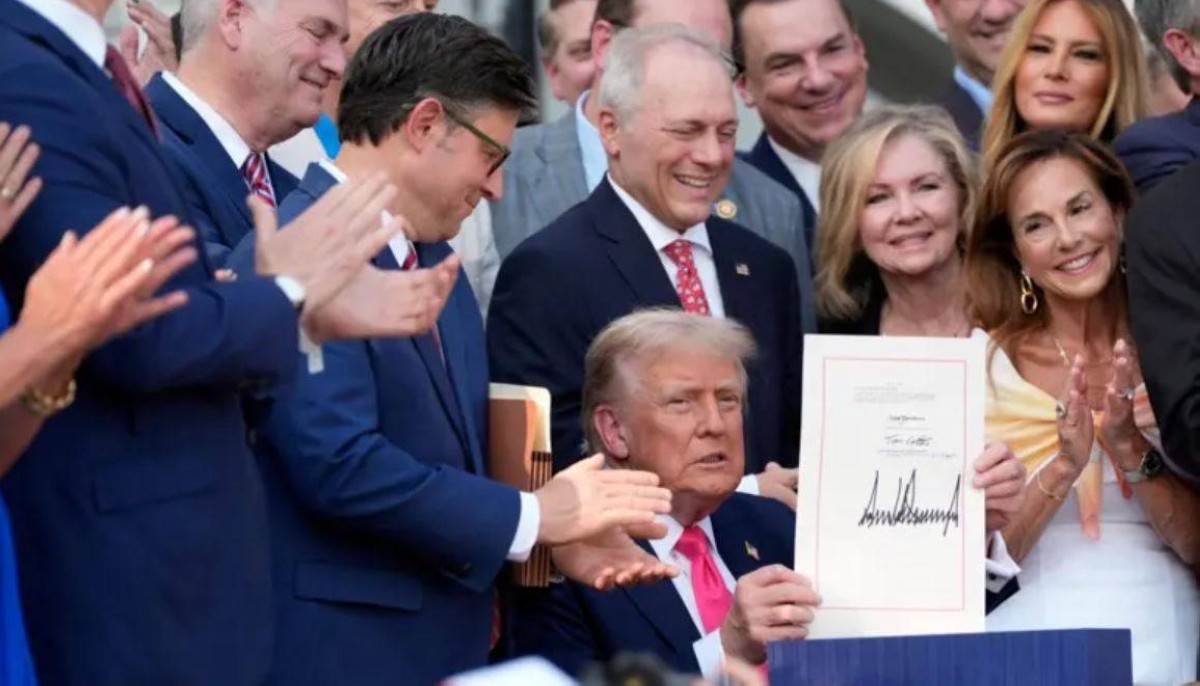 وقال ترامب خلال التوقيع "أمريكا تفوز وتفوز وتفوز أكثر من أي وقت مضى"، بينما أحاط به عشرات النواب الجمهوريين الذين دعموا ما يوصف بـ"مشروع القانون الكبير والجميل".