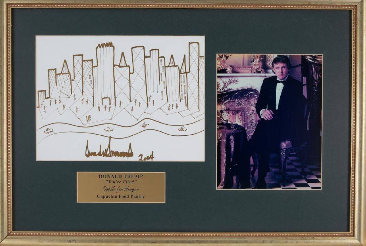 في نوفمبر 2017، باعت دار مزادات نيت دي. ساندرز، ومقرها لوس أنجلوس، رسمًا لترامب لأفق مدينة نيويورك فوق توقيعه مقابل ما يقرب من 30 ألف دولار. كان ترامب قد رسم الرسم عام 2005 في خضم شهرته المتزايدة كمقدم برنامج تلفزيون الواقع "المتدرب"، وتبرع به لمزاد خيري آنذاك.