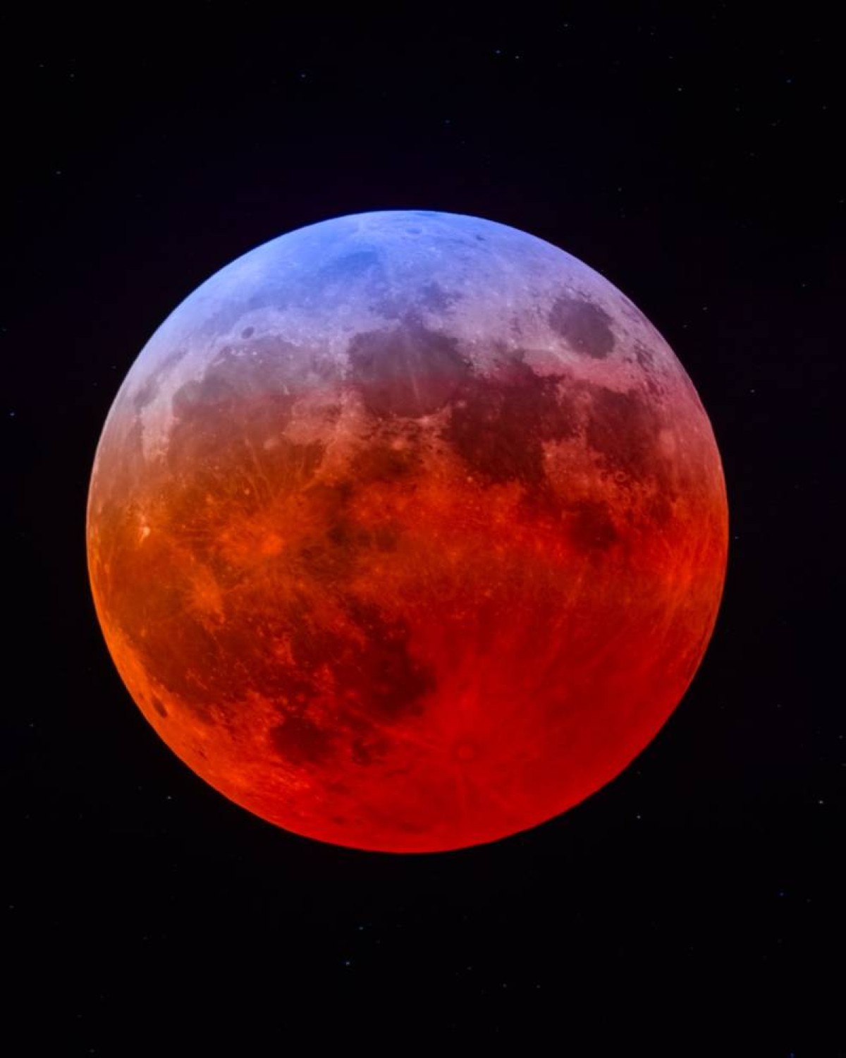 لكنه لا ينطفئ، إذ تستمر الأرض في إرسال الضوء من الشمس إلى القمر، عبر الأشعة التي تأخذ لونا أحمر.