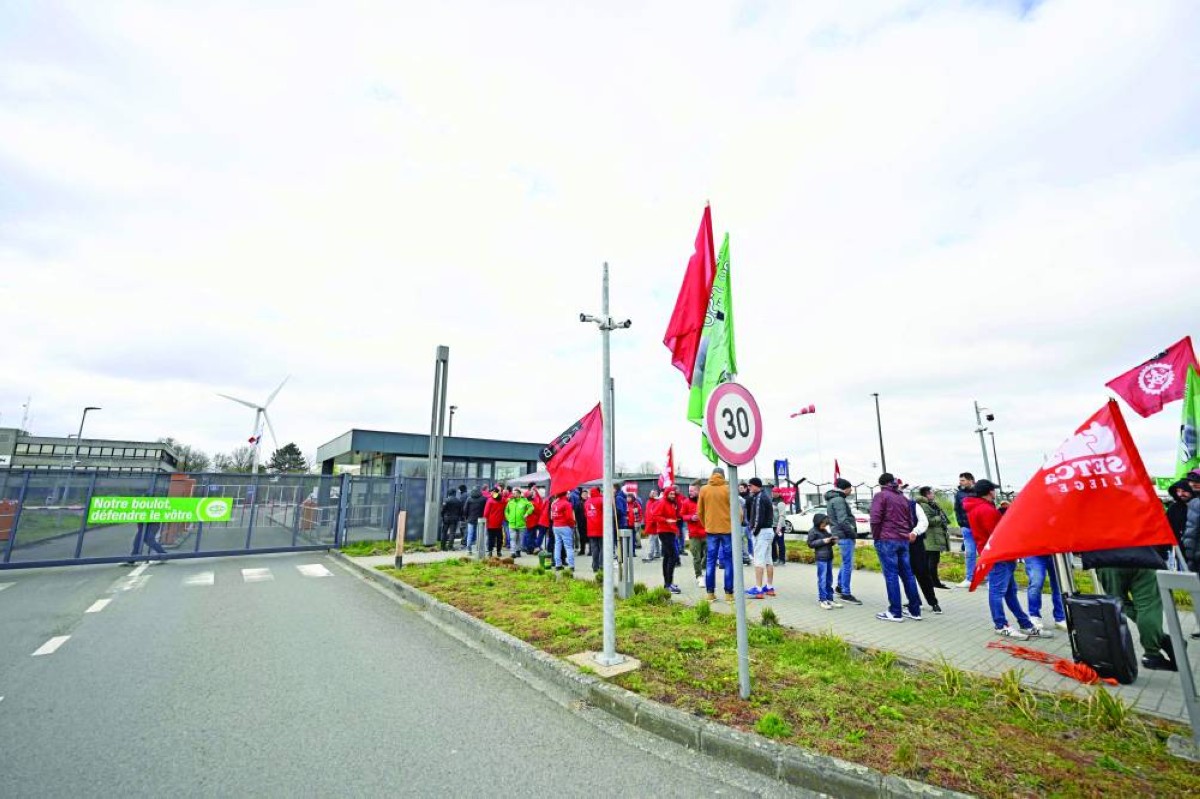 نقابيون يشاركون في الإضراب بمنطقة هيرستال الصناعية