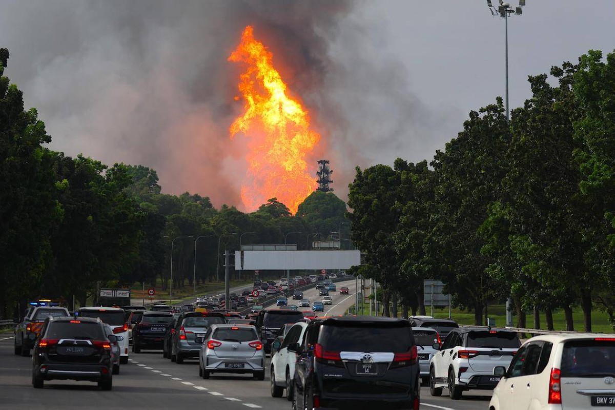 فيديو.. انفجار أنبوب غاز يسبب حريقاً هائلاً في ماليزيا
