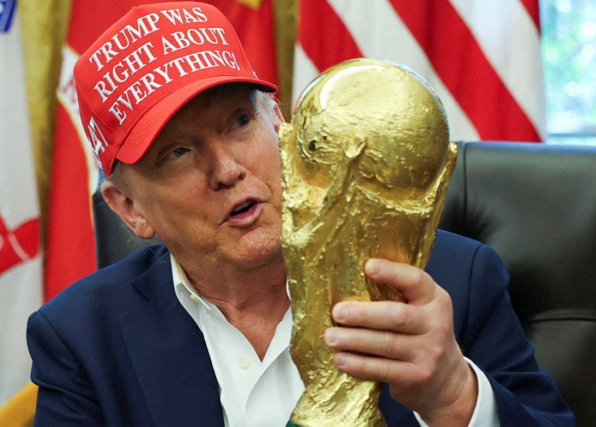 أثار الرئيس الأمريكي دونالد ترامب عاصفة من التساؤلات الحائرة لدى استقباله رئيس الاتحاد الدولي لكرة القدم (فيفا) جياني إنفانتينو. وكان يرتدي على غير العادة أثناء اللقاء قبعة حمراء مكتوباً عليها عبارة «ترامب كان محقاً في كل شيء» (Trump was right about everything).