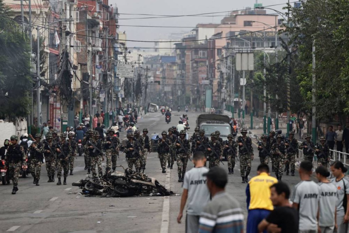 قام جنود الجيش النيبالي بحراسة شوارع العاصمة كاتمندو اليوم الأربعاء، كما أمروا المواطنين بالبقاء في المنازل أثناء تحركهم لاستعادة النظام، عقب أن اقتحم عشرات الآلاف من المتظاهرين المباني الحكومية وأضرموا النيران بها، كما هاجموا ساسة.