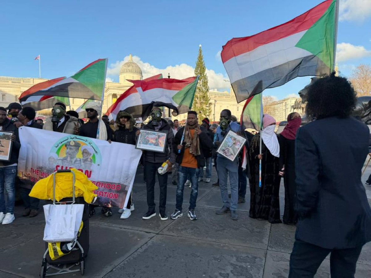 ونظّمت رابطة السودانيين في المملكة المتحدة، السبت، وقفة احتجاجية أمام مقر رئاسة الوزراء البريطانية في لندن للمطالبة بوقف الحرب في السودان، والبدء فوراً بمسار سياسي يفضي إلى حكم مدني.